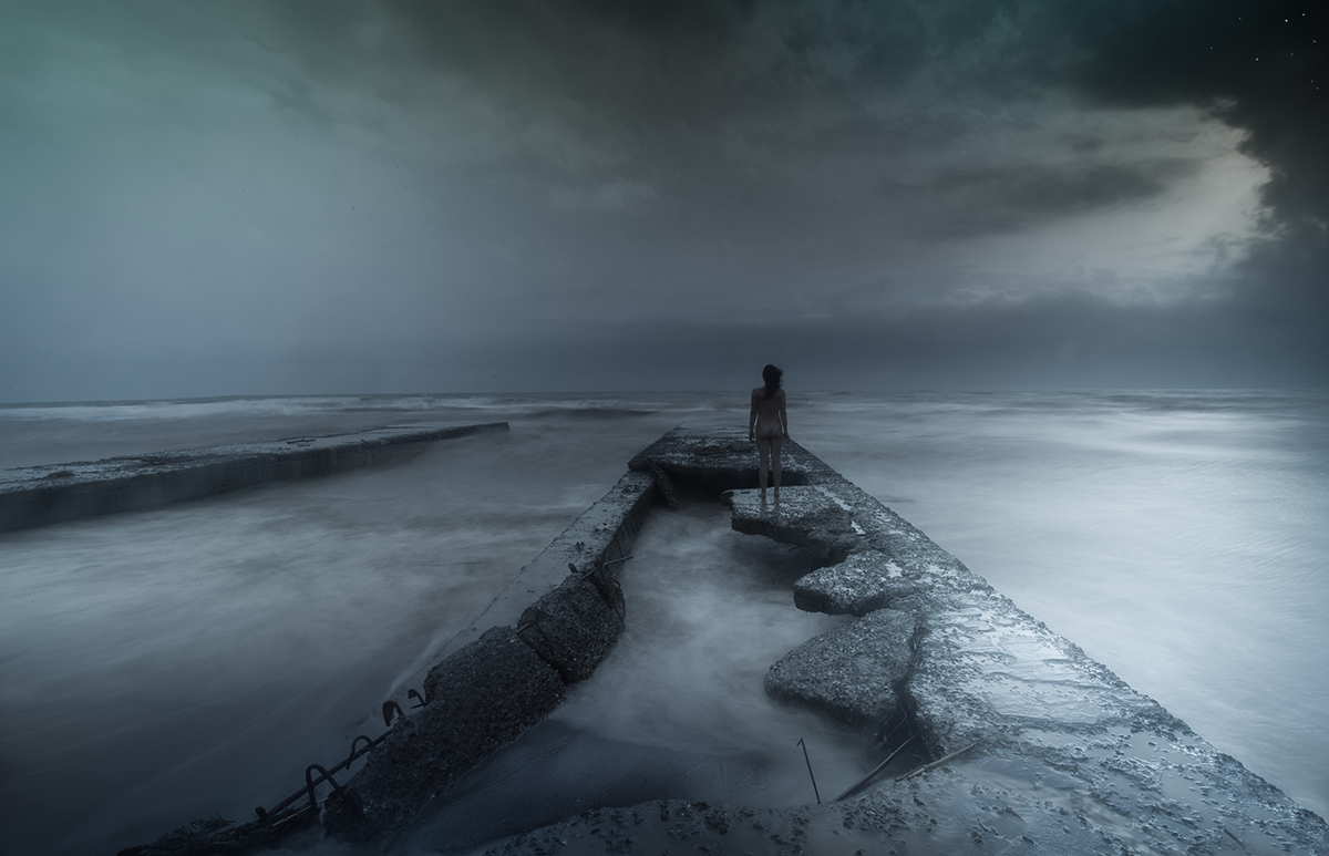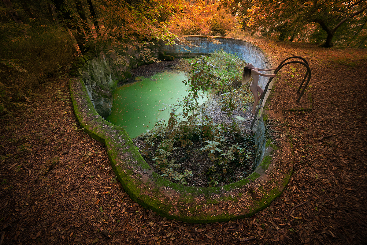 Alter Ego. A rather wan day in October, so the model was illuminated by flash with a yellow gel. Inspired by Tintoretto’s Susanna and the Elders (1562). Location: Lake Bolsena, Latium