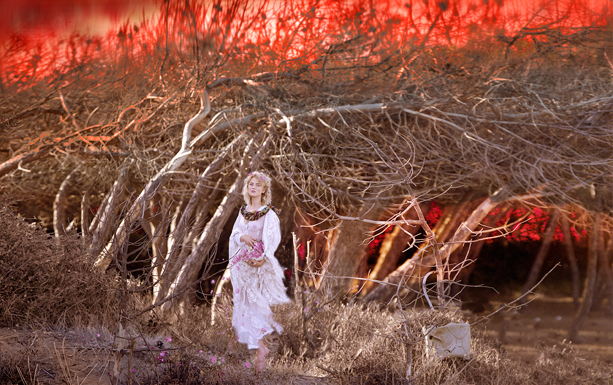 Flora Furiosa is inspired by one of the figures, Flora, in Botticelli’s Spring (1482). She is scattering the flowers of spring while the forest fire still rages. Not really of course, the flames were created in PhotoShop.Taken on film, Mamyia RB67. Location: Pescia Fiorentina, Tuscany