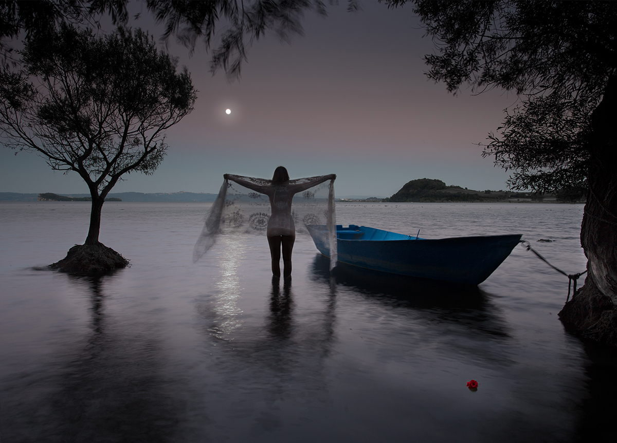 Spectre de la rose. The woman is draped in lace from my grandmother’s wedding dress from 1924. Inspired by one of Berlioz’s Chanson d’été, itself based on the poem by Théophile Gautier. Location: Lake Bolsena, Latium