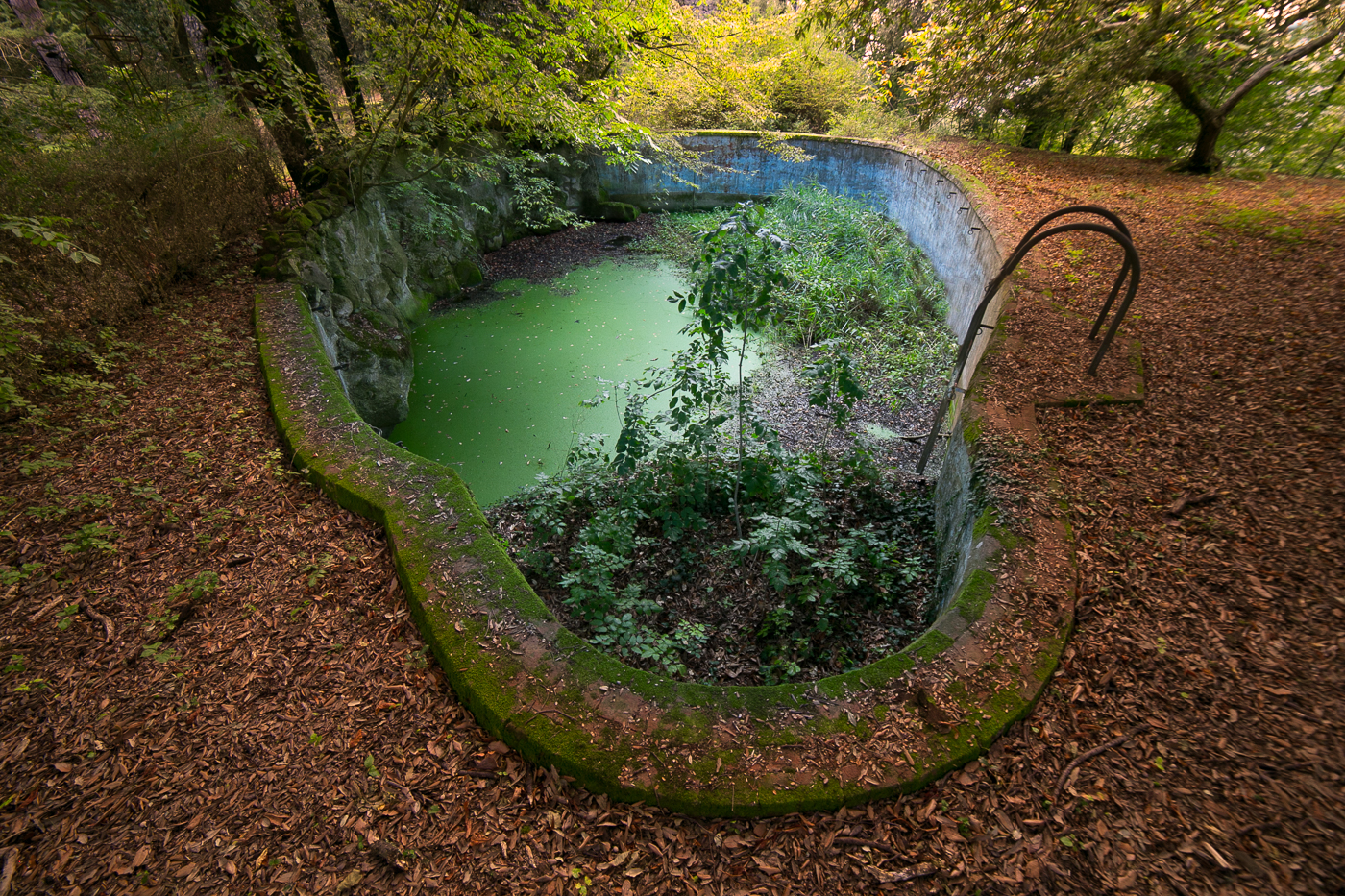 The abandoned swimming pool in the Sasseto grounds near the castle. Neither of the two Cahen sons had children.