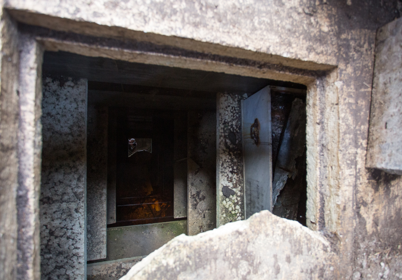 Edoardo Cahen’s coffin amongst on the top of otherwise empty shelves in the Mausoleum